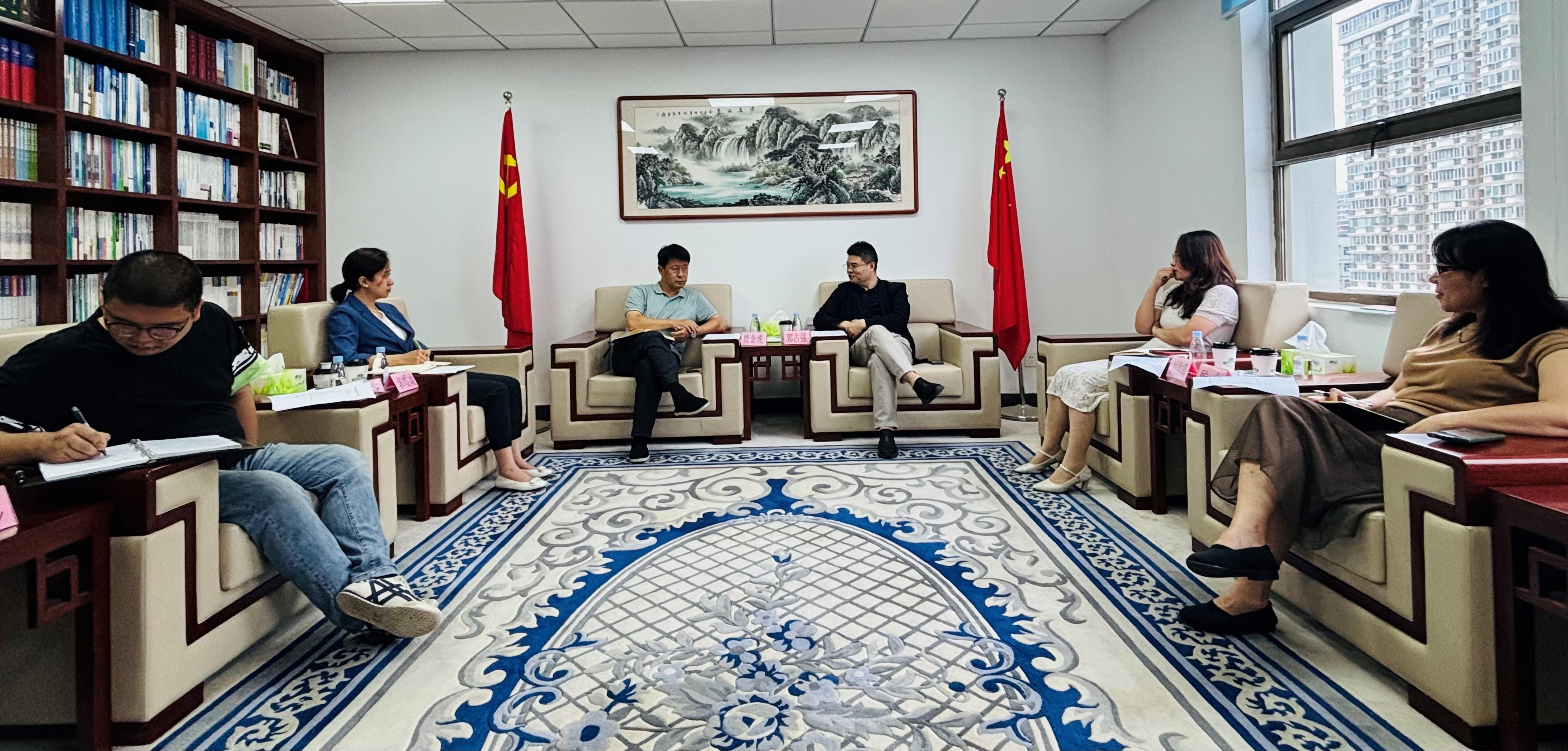 中國循環經濟協會副秘書長劉君霞、互聯網專委會秘書長侯允、戰略部主管于德泉,出版集團總經理總編輯助理郭媛媛,辦公室、編輯管理部負責同志參加座談交流。